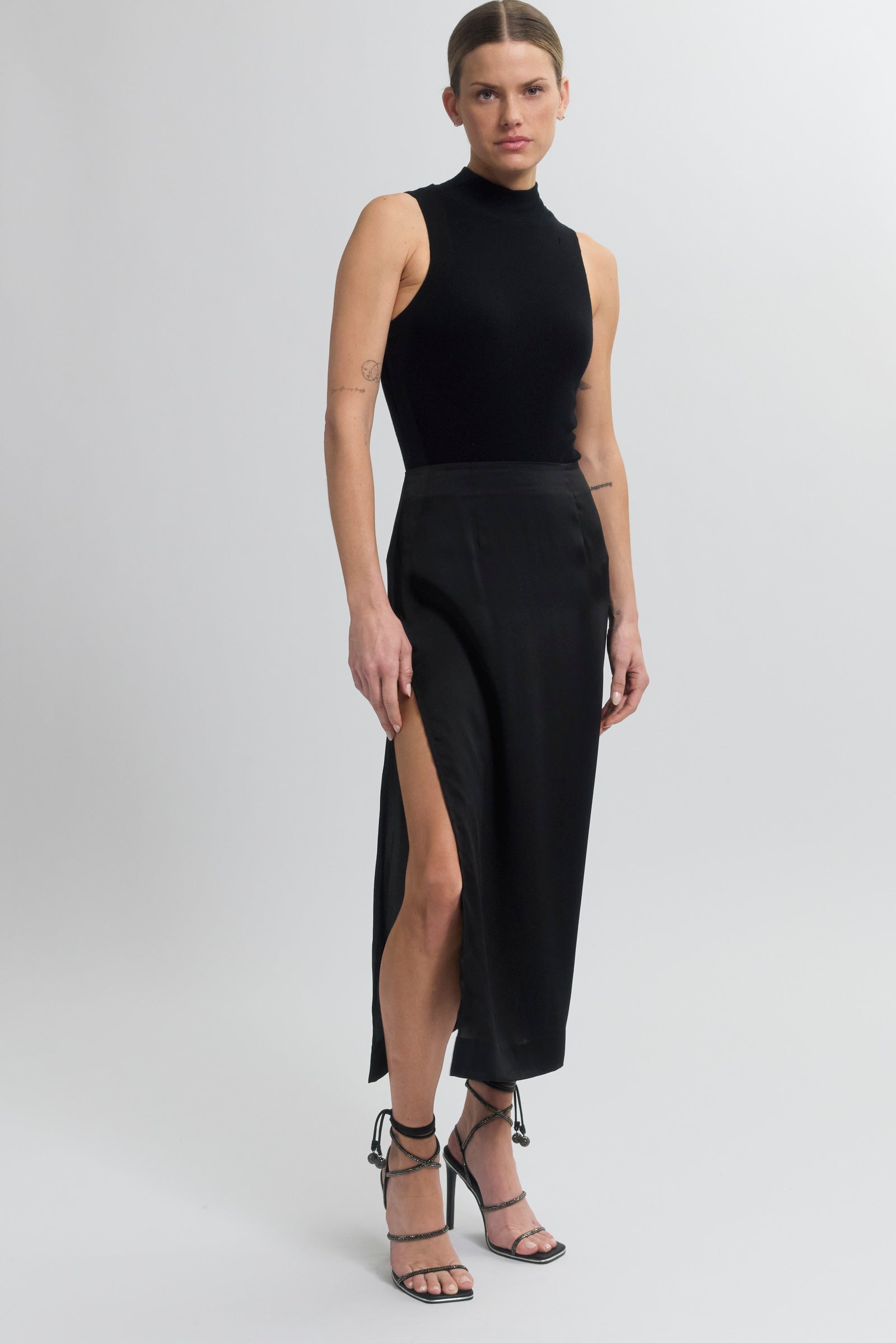 Capturing a cool downtown spirit with sophisticated yet approachable styles, the ARIAS New York brand has become synonymous with modern elegance. A must-have wardrobe staple, the Signature Pencil Skirt is rendered in a luxe double-layer satin twill and features a simple yet ultra-flattering fit and dramatic side slit.