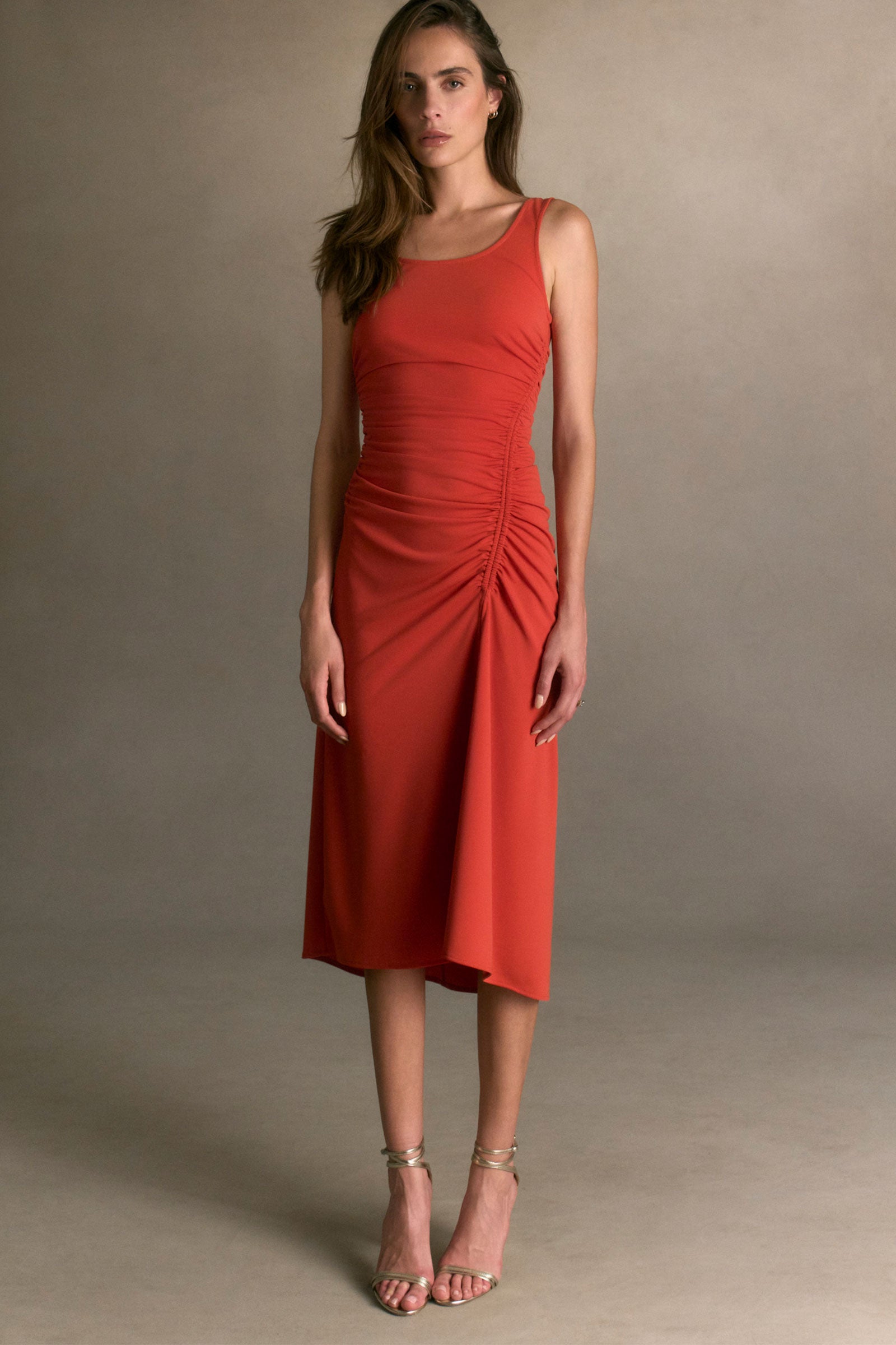 ARIAS New York collections embody a modern and feminine approach to design. The Ruched Front Midi Dress is an effortless bodycon slip-on style, crafted from stretch jersey and designed to take you from day to night.