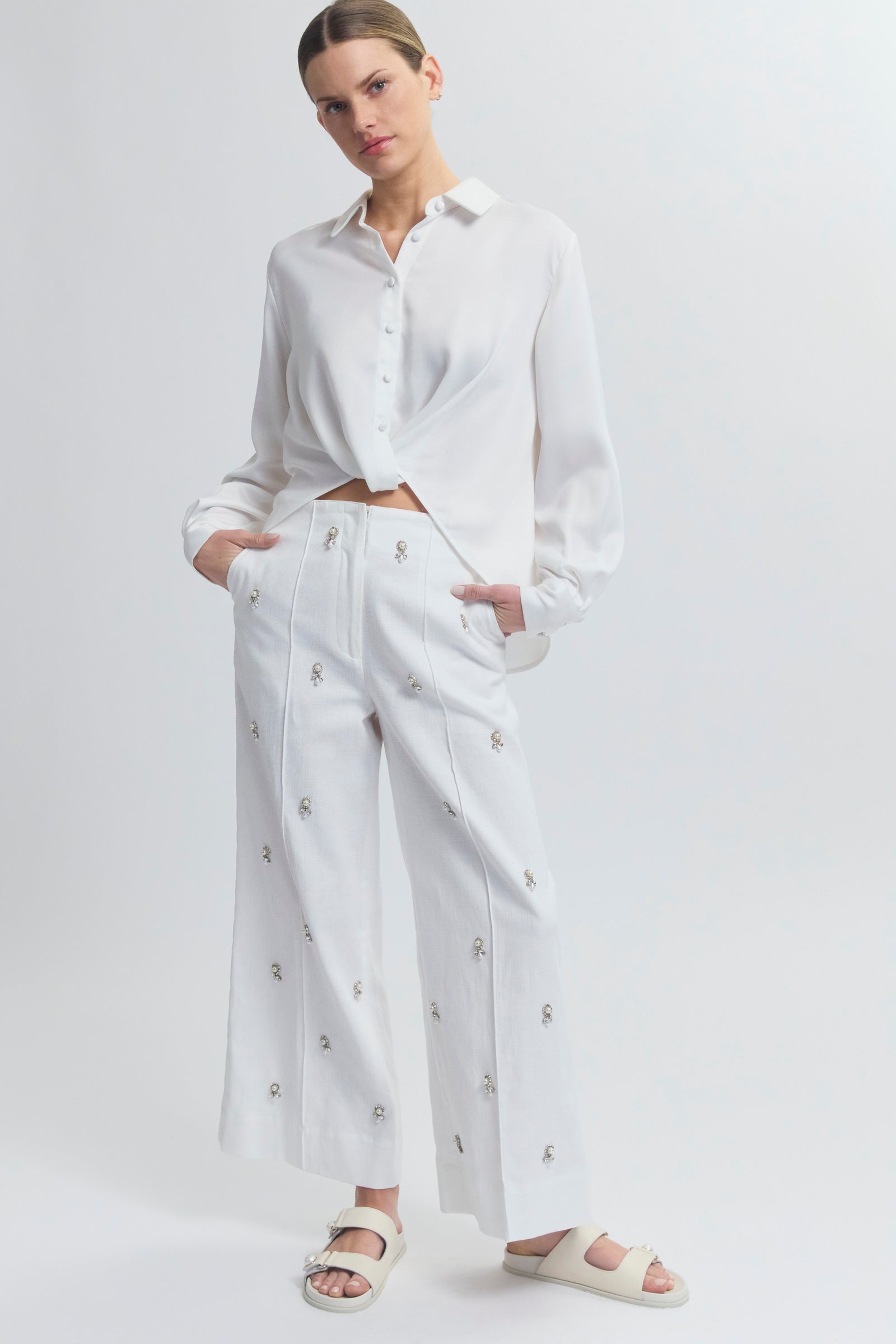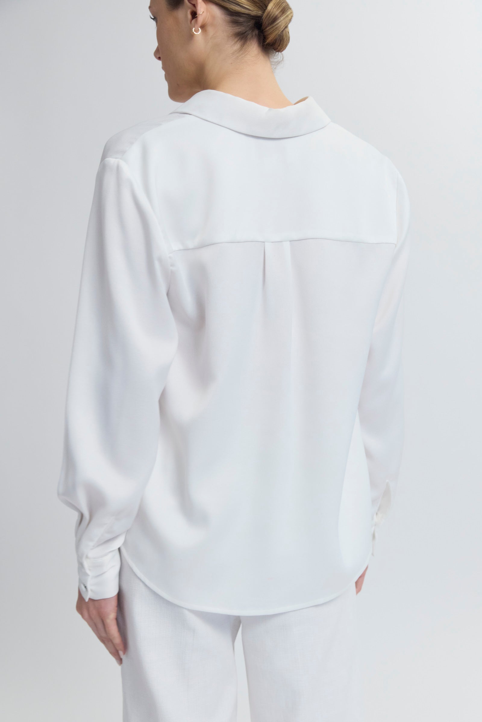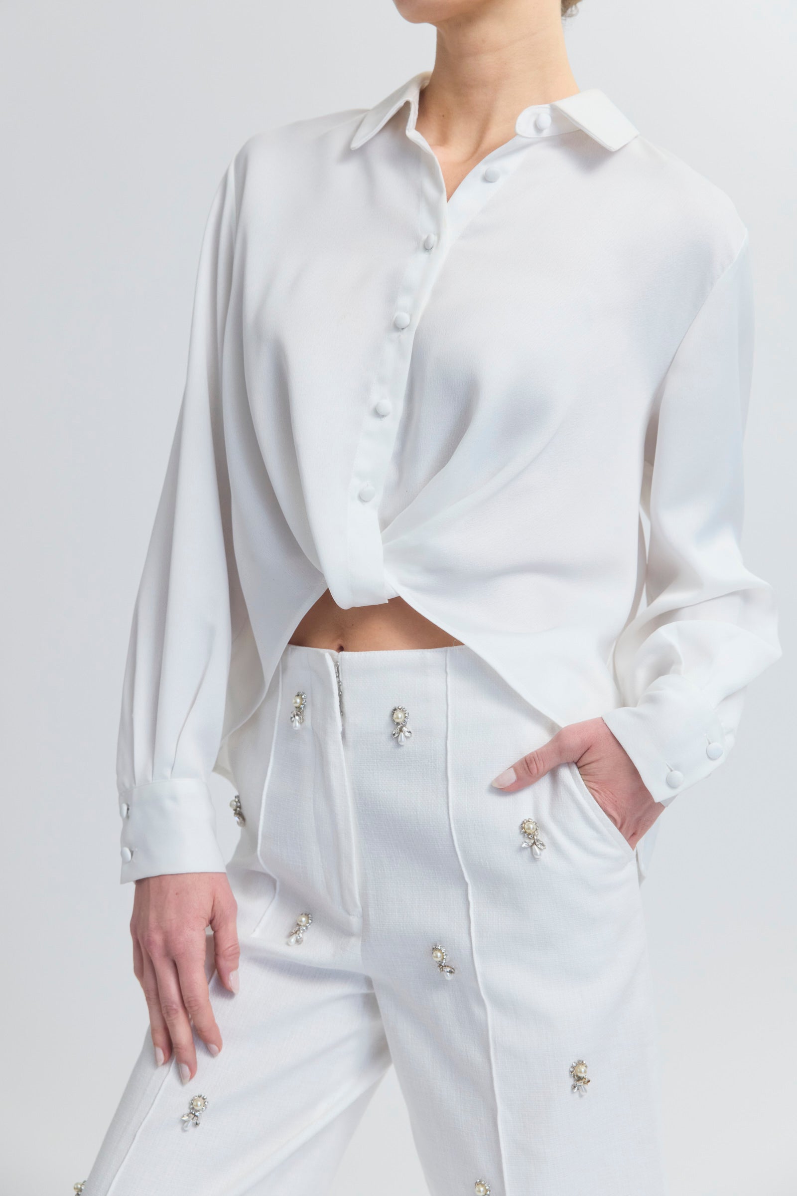 Capturing a cool downtown spirit with sophisticated yet easy-to-wear styles, the brand has become synonymous with modern elegance and what women want to wear. The Twist Front Blouse is rendered in luxe satin crepe and features a twist detail at front and high low hem.