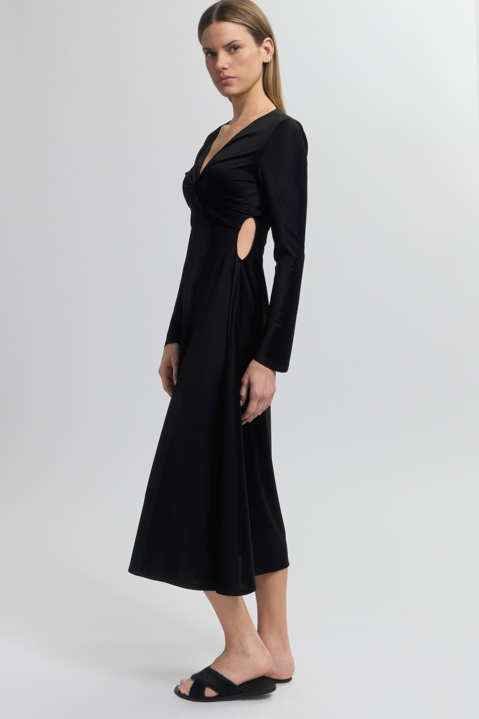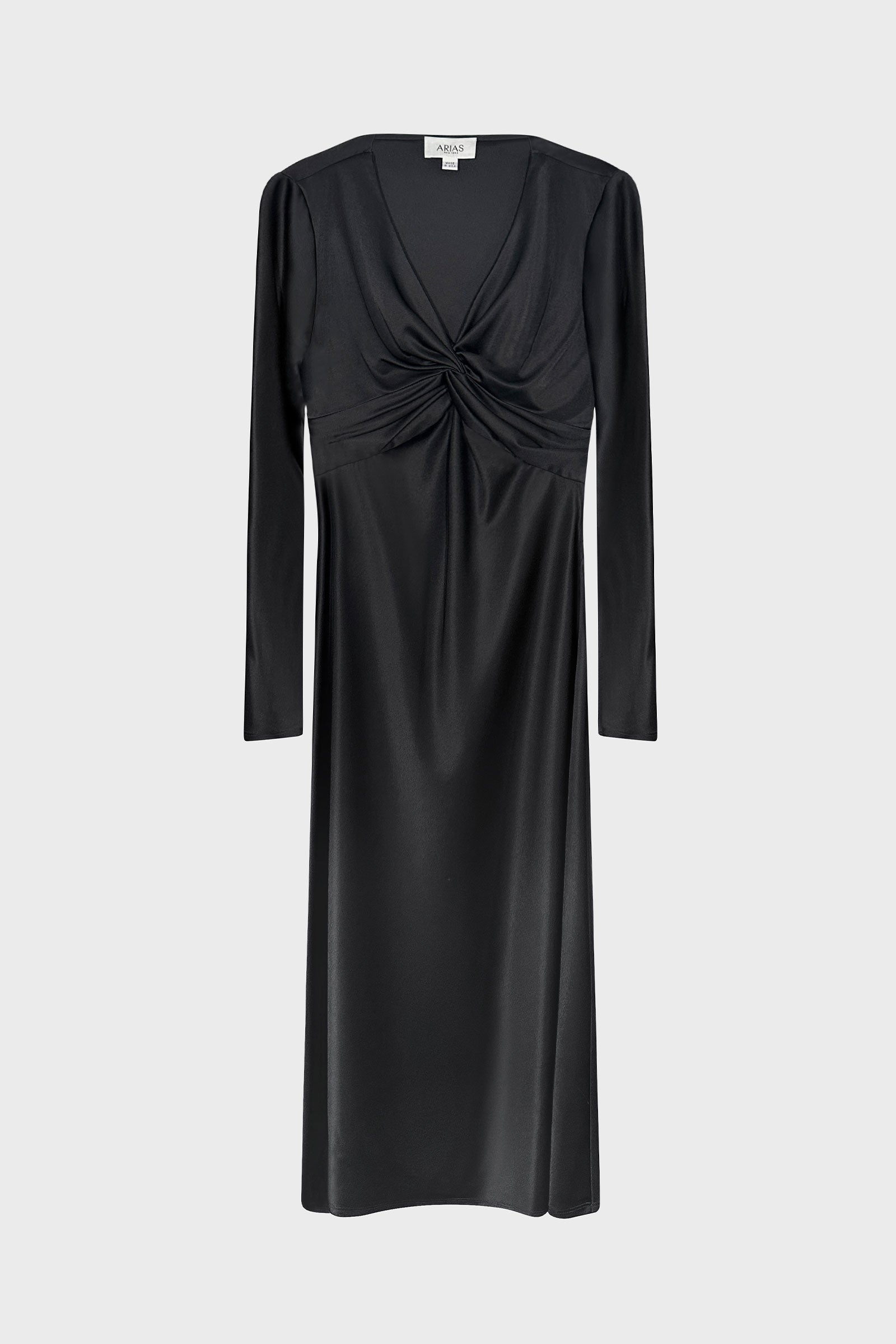 ARIAS New York collections are made in New York with the highest quality and manufacturing. The Twist Front Dress is rendered in luxe satin jersey and features a fit and flare shape and flattering side cutouts —a timeless piece to wear on many occasions.