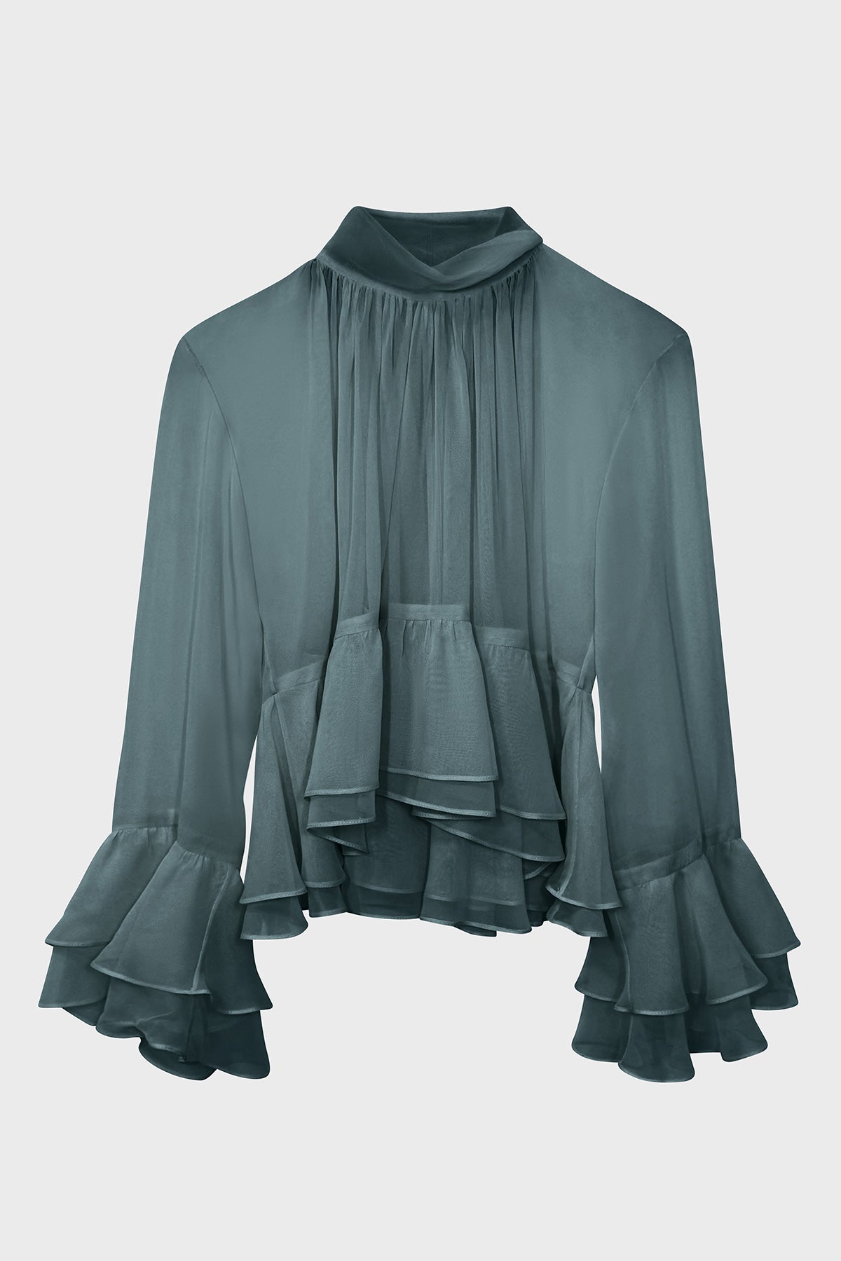 ARIAS New York's collections are inspired by contemporary art and designed to take you from day to night. The Gathered Neck Ruffle Top is crafted from luxe silk chiffon, featuring an artfully gathered neckline and ruffled sleeves. Style with our Signature Tuxedo Pants or your favorite pair of jeans to complete the feminine look.
