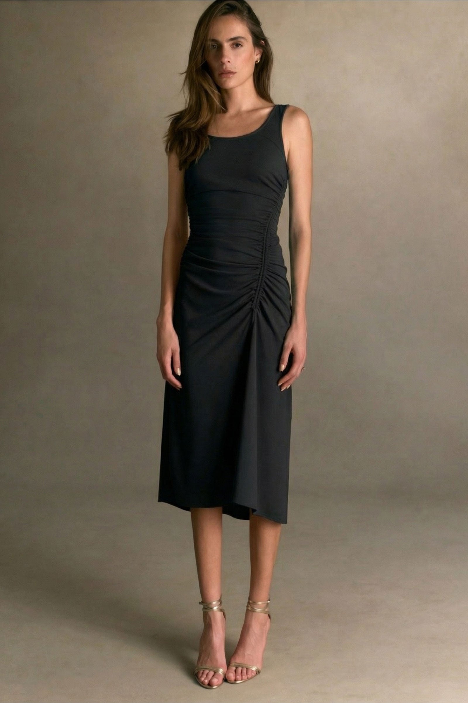 ARIAS New York collections embody a modern and feminine approach to design. The Ruched Front Midi Dress is an effortless bodycon slip-on style, crafted from stretch jersey and designed to take you from day to night.